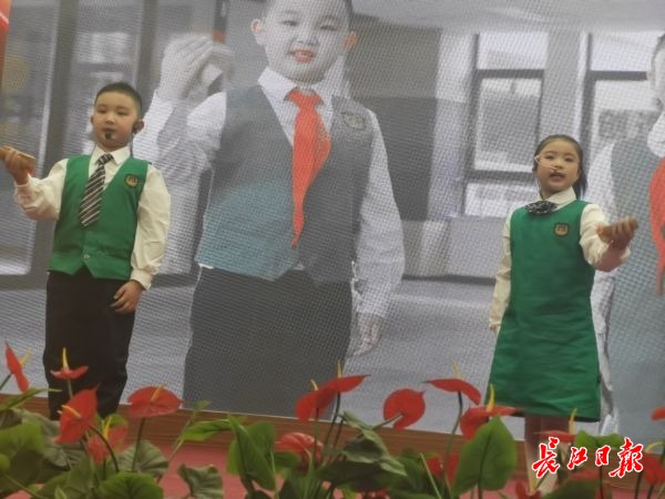 活动在武汉市育才小学师生表演唱《不老的老师》中拉开序幕。随后,该校师生们还通过歌舞剧,用生动的表演再现了布置超越学生能力的作业,让家长代为批改作业,向校外培训机构组织、输送生源等现象与行为,抨击当前教育中存在的问题,引人深思。