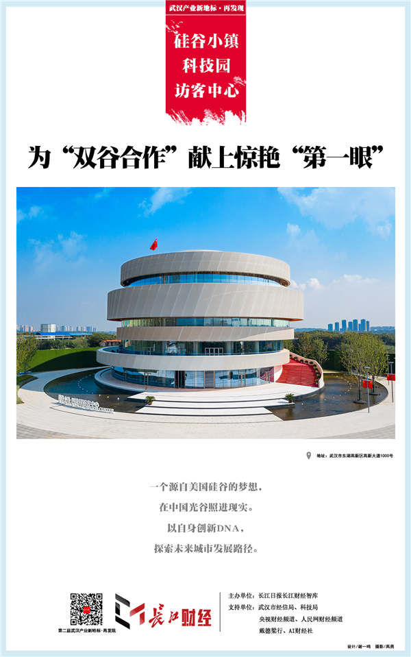 这里是硅谷小镇·科技园的地标性建筑,寓意中国光谷与美国硅谷“双谷合作”,同时还扮演着数字经济孵化器角色,从产业维度为硅谷小镇·科技园“探路”。硅谷小镇·科技园总投资200亿元,将促进区域产业、人居、环境融合发展,加快建设高端创新要素聚集的国际人才自由港。