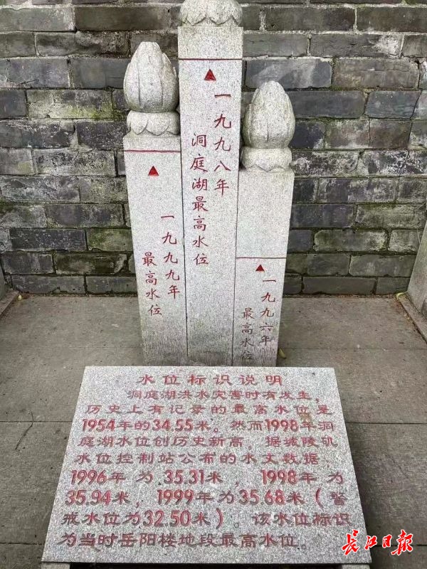 洞庭湖水位标识。特派记者范芃 摄