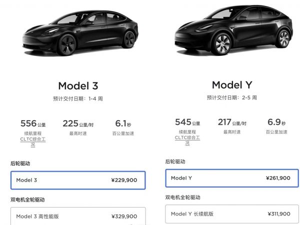 特斯拉官网显示,目前Model 3起售价格为229900元,Model Y起售价格为261900元。这是特斯拉在年初对这两款车型进行大幅调价后的售价,彼时下降幅度在2至4.8万元。