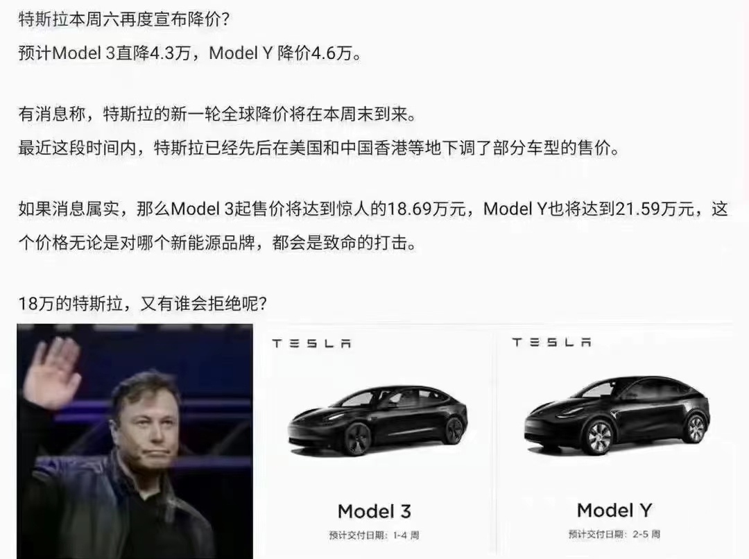 此前,美国当地时间4月18日,特斯拉再度下调了北美地区Model 3和Model Y的售价,最高降幅3000美元(约合2万元人民币)。