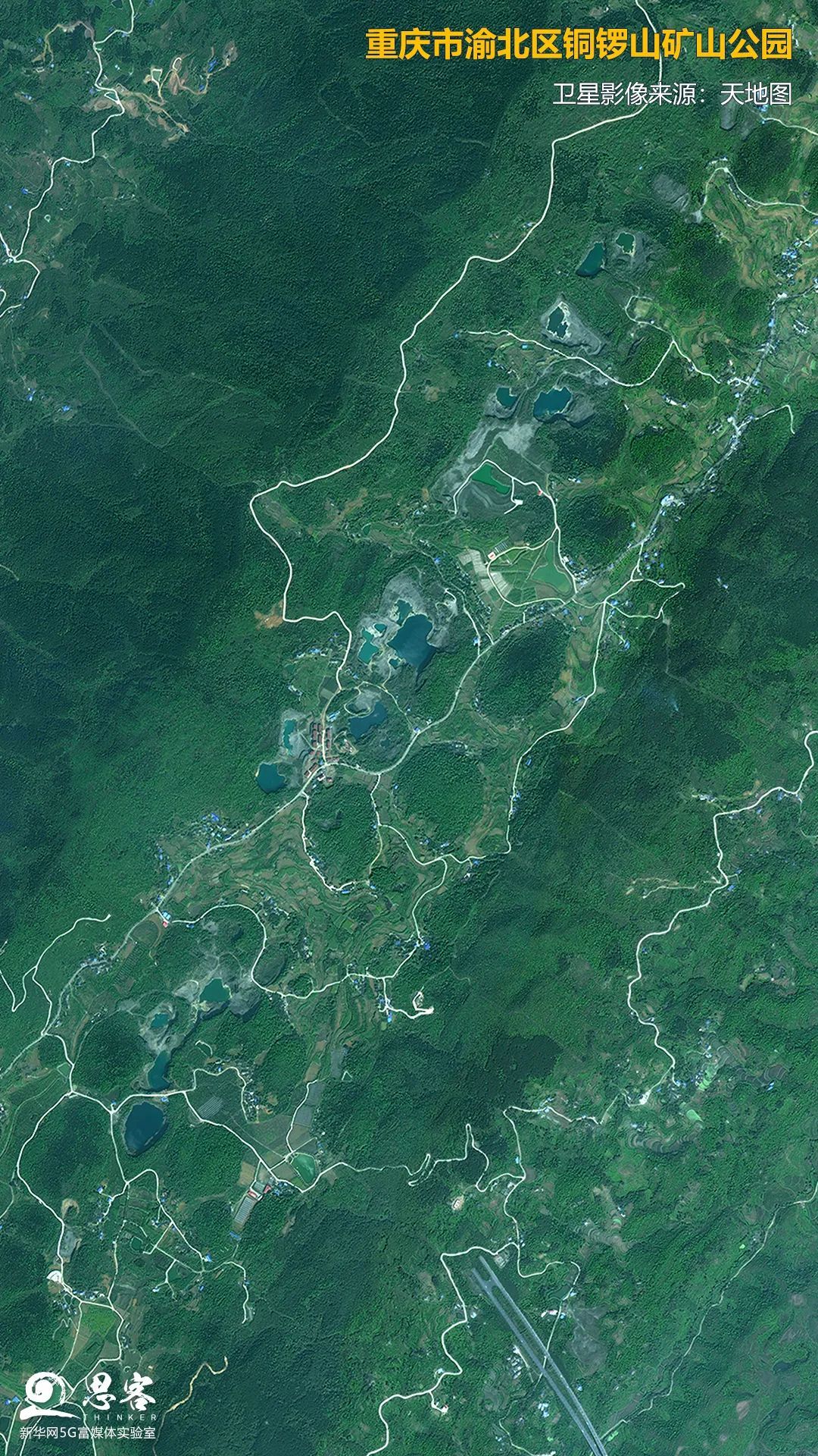 重庆市渝北区铜锣山矿山公园。几年前这里还是一片满目疮痍的废弃矿坑群,在长江经济带共抓大保护的理念指引下,废弃矿坑群变成“网红小九寨”。
