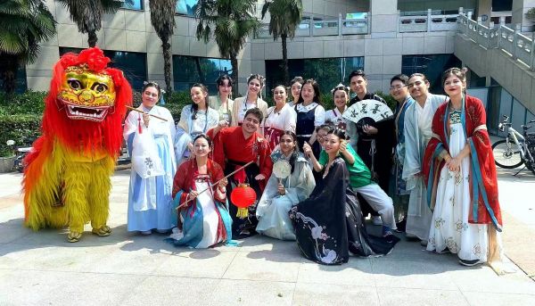 现场,来自各高校的国际学生们表演了精彩的节目:诗朗诵《致橡树》、音诗画《黄鹤楼》、中国舞《只此青绿》、表演唱《汉阳门花园》、舞狮武术表演《龙狮艺术》,以及舞蹈《土家摆手舞》等,赢得全场阵阵掌声。