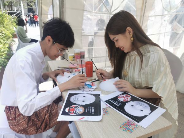 本次“国际中文日”活动还设置了十几个文化展台。在荆楚文化展台能体验皮影戏、画脸谱、编中国结等中国传统艺术。此外,来自武汉理工大学、中国地质大学(武汉)、武汉工业大学等高校的留学生分别展示了土库曼斯坦、泰国、俄罗斯、巴西、印度等国别文化。