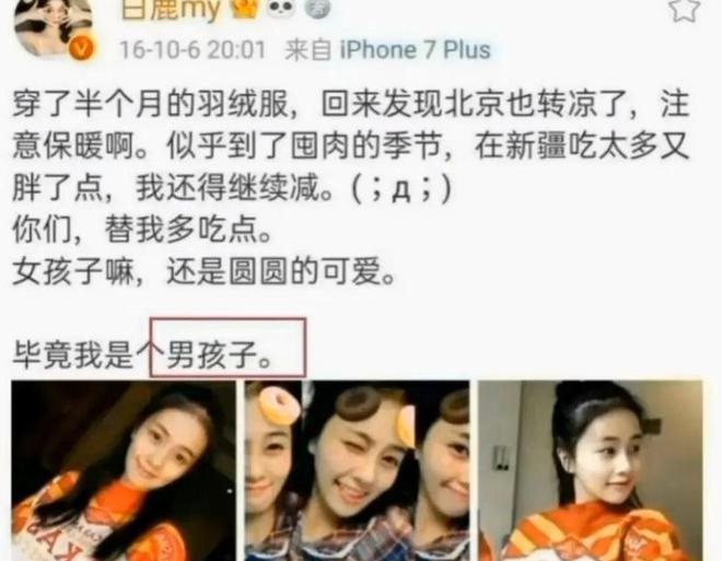 例如,白鹿曾在2016年发文,“我是个男孩子”;
