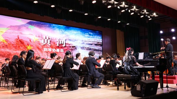 音乐会在大气磅礴的《黄河》钢琴协奏曲中拉开序幕,演奏者们通过钢琴协奏曲、管弦乐、小提琴协奏曲、混声合唱、舞蹈等多种艺术表现形式,倾情演绎了《春天的故事》《红色娘子军》《没有共产党就没有新中国》等13首大众耳熟能详的红色经典曲目及民族乐曲。在气势恢弘的音乐和热血沸腾的歌声中,表演者们用沉浸式的演出带着广大师生重温了中国共产党领导中华民族从站起来、富起来到强起来的光辉历程,极富感染力和冲击力,彰显了音乐和舞蹈打动人心的独特力量,温暖人心,催人奋进。