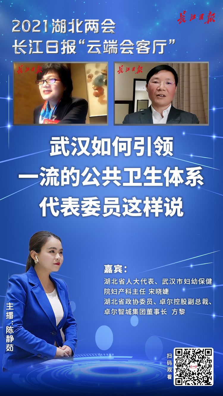 长江日报-长江网讯(记者高萌)1月25日晚8时,省人大代表、武汉市妇幼保健院妇产科主任宋晓婕,省政协委员、卓尔控股副总裁、卓尔智城集团董事长方黎做客长江日报湖北省两会“云端会客厅”,与演播厅主播同屏互动,“云”上畅谈“创新中国”“健康中国”“产业振兴”版图上湖北武汉的新作为。