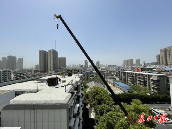 施工人员正在拆除水箱。长江日报记者孙笑天 摄