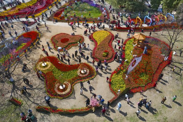 解放公园,空中俯瞰郁金香造景。城市摄影队 邹幼勤 摄