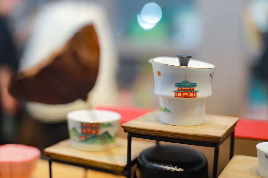 杯子做出了竹节的感觉,杯子外壁勾勒了古风竹子和黄鹤楼等元素,转动杯子时,这些图案会随着转动的角度若隐若现,非常有设计感。