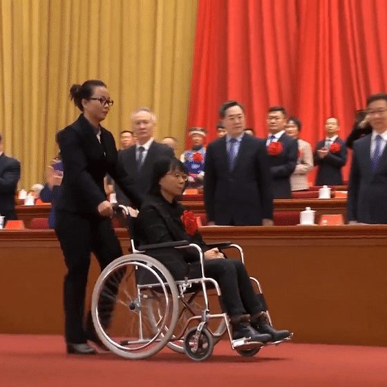 坐轮椅登上主席台