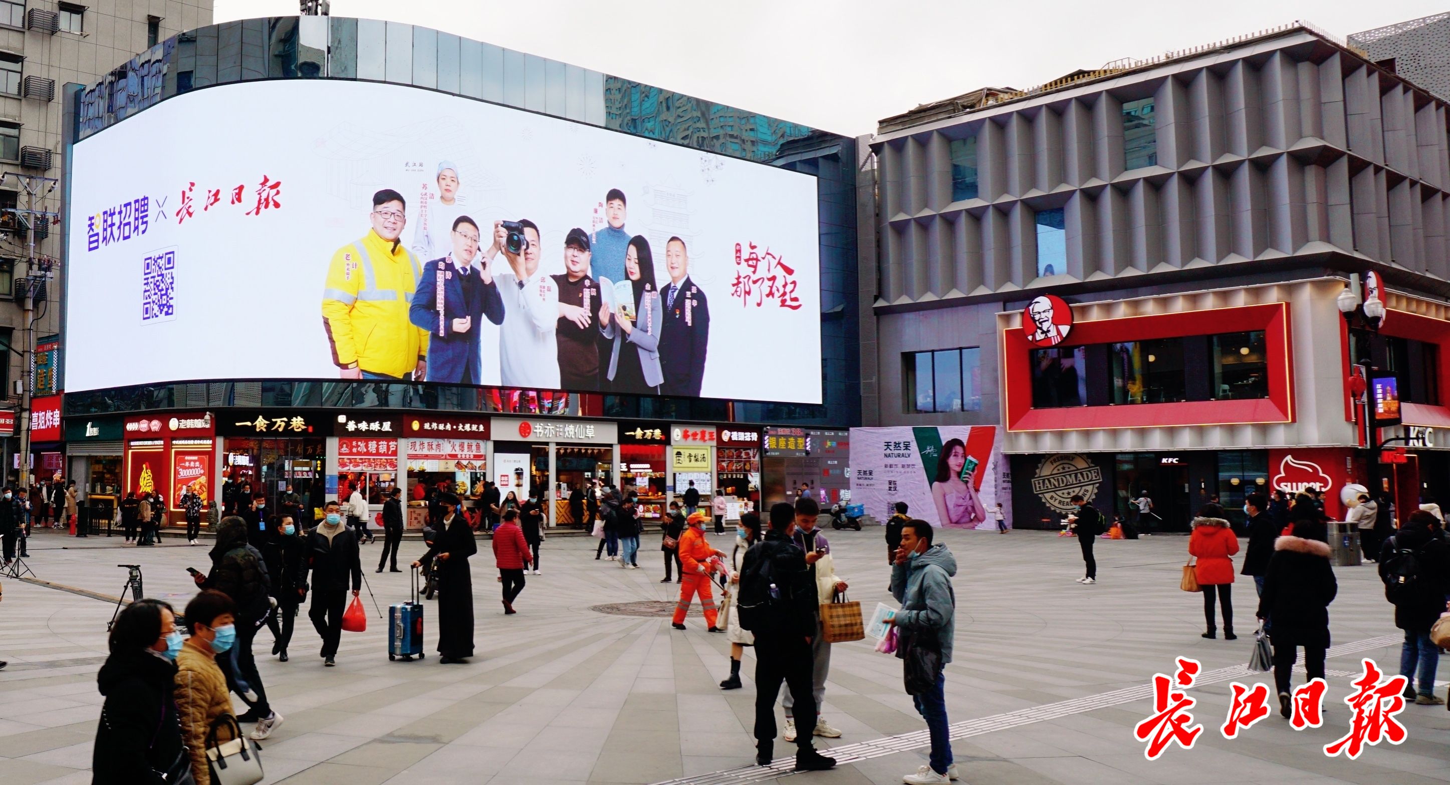 “每个人都了不起”江汉路户外大屏显示。长江日报记者范芃 摄