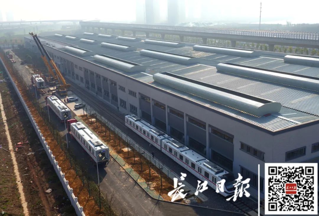 昨日,在地铁5号线青菱停车场,一辆武汉地铁5号线列车的6节车厢,稳稳地停在停车场内的轨道上,由牵引车拖进停车棚内。