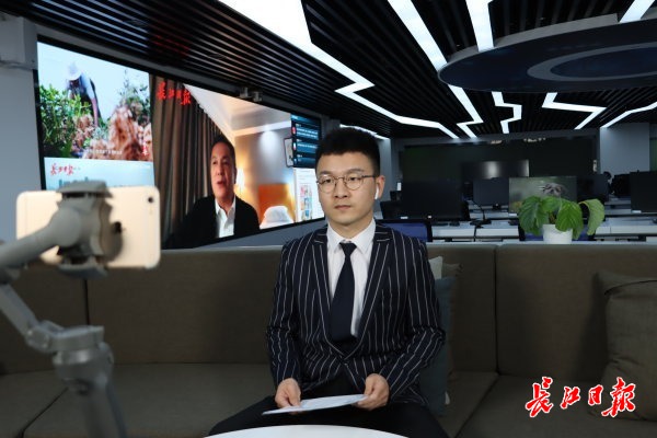 长江日报记者徐佳正对全国人大代表张锐进行连线采访。 记者杨涛 摄