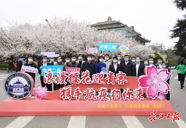 长江日报-长江网3月10日讯 “武大的樱花,我们来了。”3月10日下午,来自中建二局的16名火神山、雷神山建设者代表,受武汉大学邀请,赴一场一年前的樱花之约。