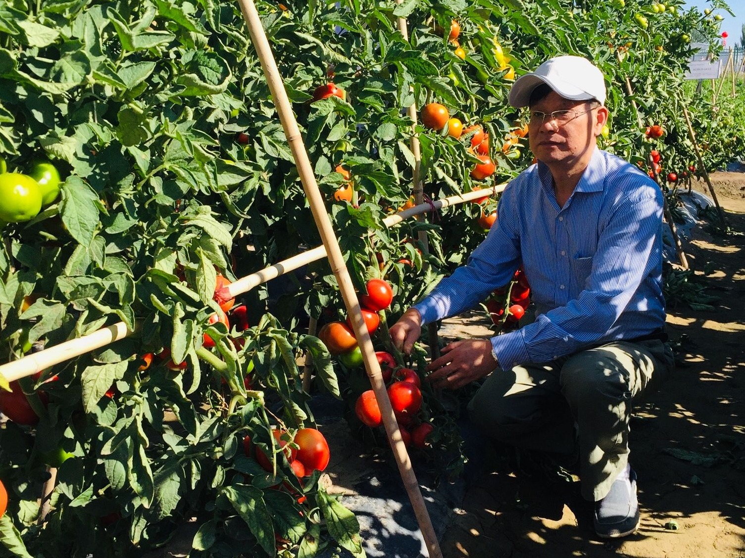 叶志彪与番茄合影。