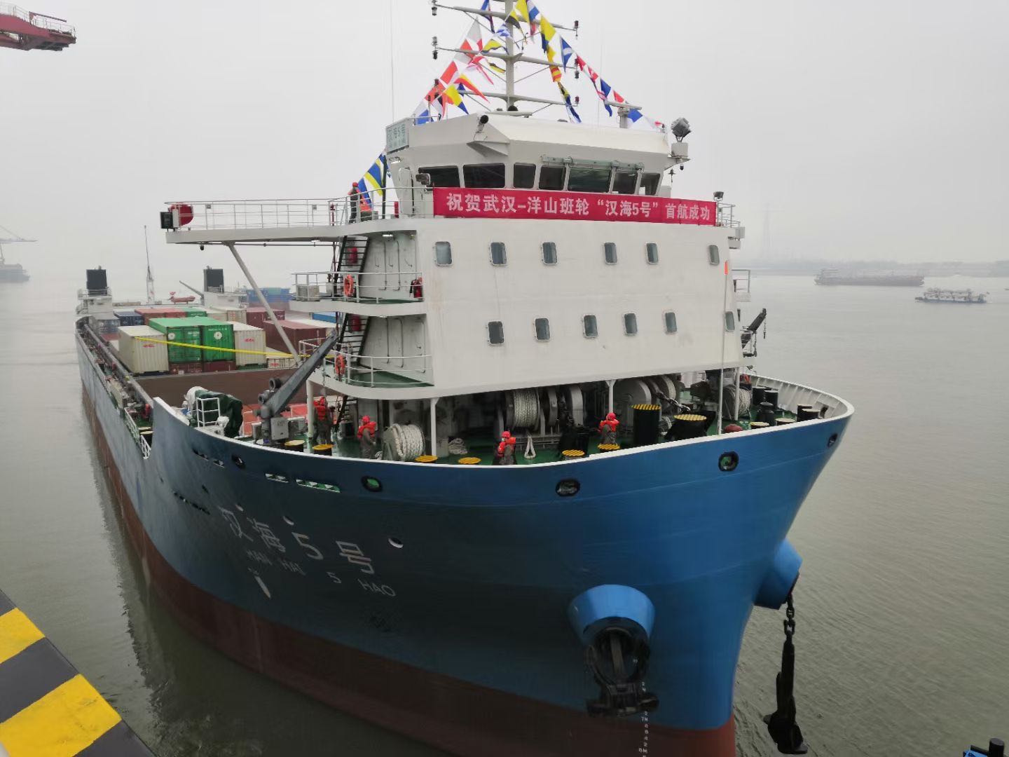 “汉海5号”轮的首航,标志着江海联运实现跨越式发展,这也标志着推动长江内河航运新变革的进程中,武汉新港再迈坚实一步。