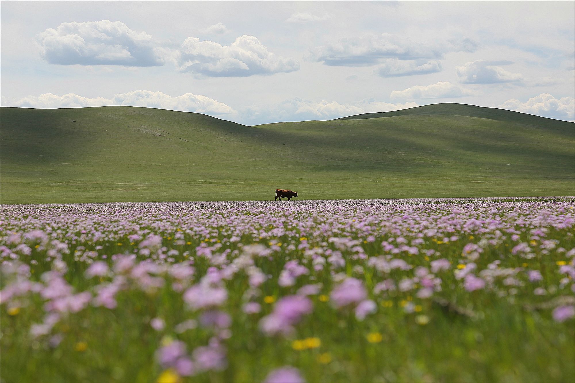 这是在扎鲁特旗拍摄的草原花海(2020年6月5日摄)。进入夏季,内蒙古自治区通辽市扎鲁特旗北部山地草原生机勃勃。