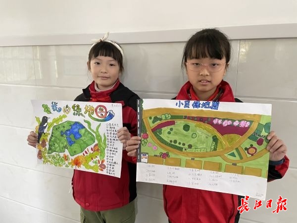 孩子们走进社区绘制的生态绿地图。长江日报记者杨幸慈 摄