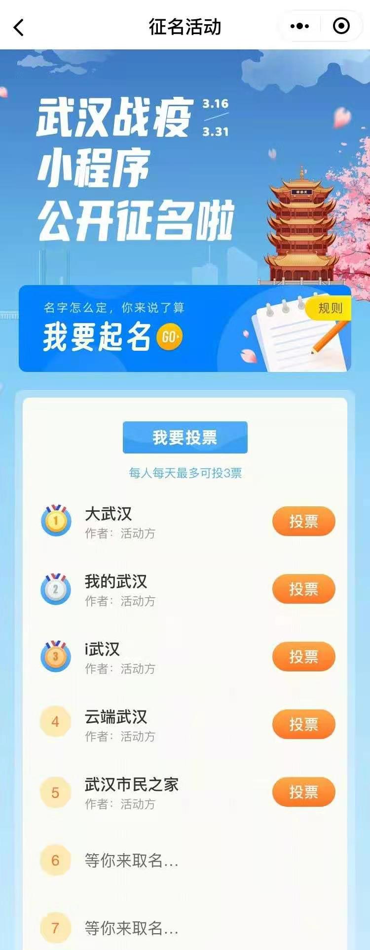 1.命名需体现“武汉战疫”小程序民生服务移动端总门户定位以及服务特点,贴合武汉地域文化特色,具有创新性、独特性、延伸性;