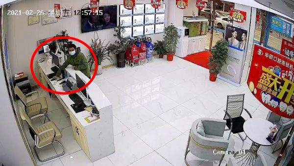 3月13日中午12时,江岸区劳动街派出所接到一起办公室内手机被盗的警情。接警后,民警郑航和辅警魏龙君迅速出警到现场走访调查、调取视频,通过查看视频发现当天上午10时,一名可疑男子在大厅游荡许久,并于11时30分左右趁办公室没人时快步潜入,几分钟后离开。