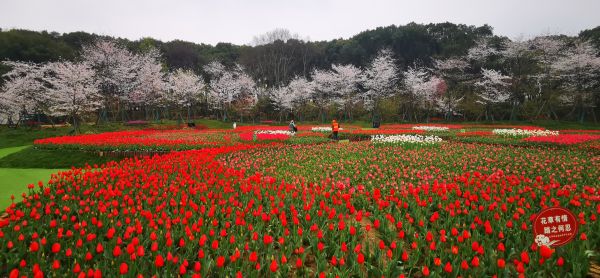 据了解,东湖樱花园内共有七万余株郁金香,涵盖了范伊克、红色印象、南极、橙汁、华沙、潮汐、夜皇后等15个品种,花卉颜色按照红、粉、橙、紫、白、黄11:11:2:2:1:1搭配,色彩丰富,层次分明。