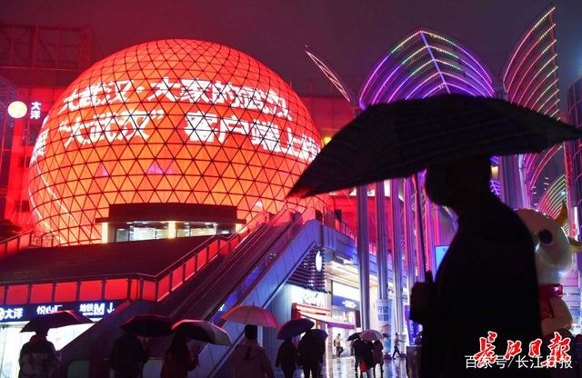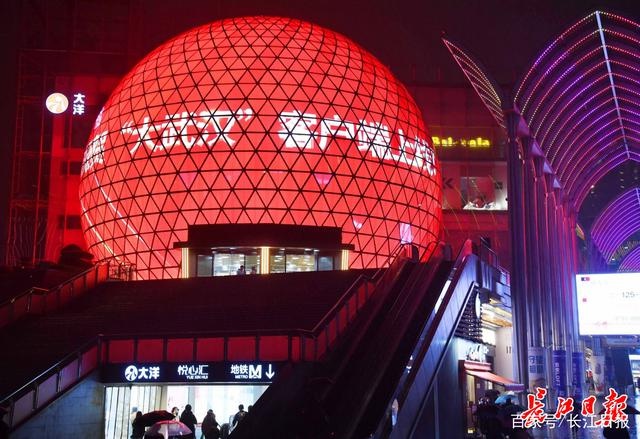 19日晚,在光谷步行街街口,高达30米的LED球屏上出现了“大武汉·大家的武汉”“大武汉客户端上线”字样。