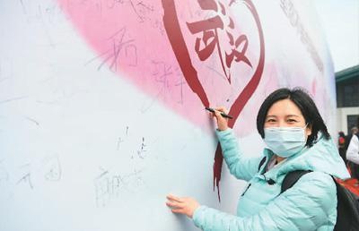 2021年3月13日,周国红在武汉大学援鄂抗疫医护人员赏樱专场活动中签名留念。