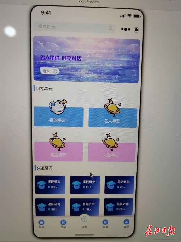 点开一款名为“星云”的手机应用软件,选择自己喜欢的数字人形象,再进入鲁迅的“名人星云”,在虚拟的百草园和三味书屋里与大文豪对话。眼下,这款由武汉和弦科技有限公司(以下简称“和弦科技”)基于数字孪生、元宇宙技术开发的新产品正在内测。