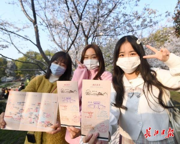 长江日报3月20日讯 20日,江岸堤角公园南大门里的染井吉野早樱依旧,众多市民纷纷在打卡墙及手举牌前留影;而樱花坡及樱花林的成片关山樱、阳光樱等晚樱也肆意绽放着,掀起又一波赏樱高潮,纷纷在樱花地图上盖章打卡留念。