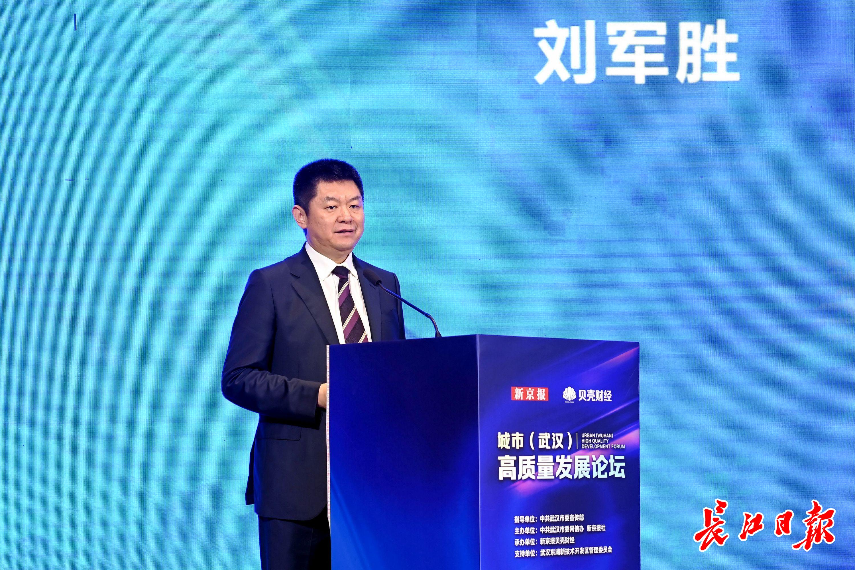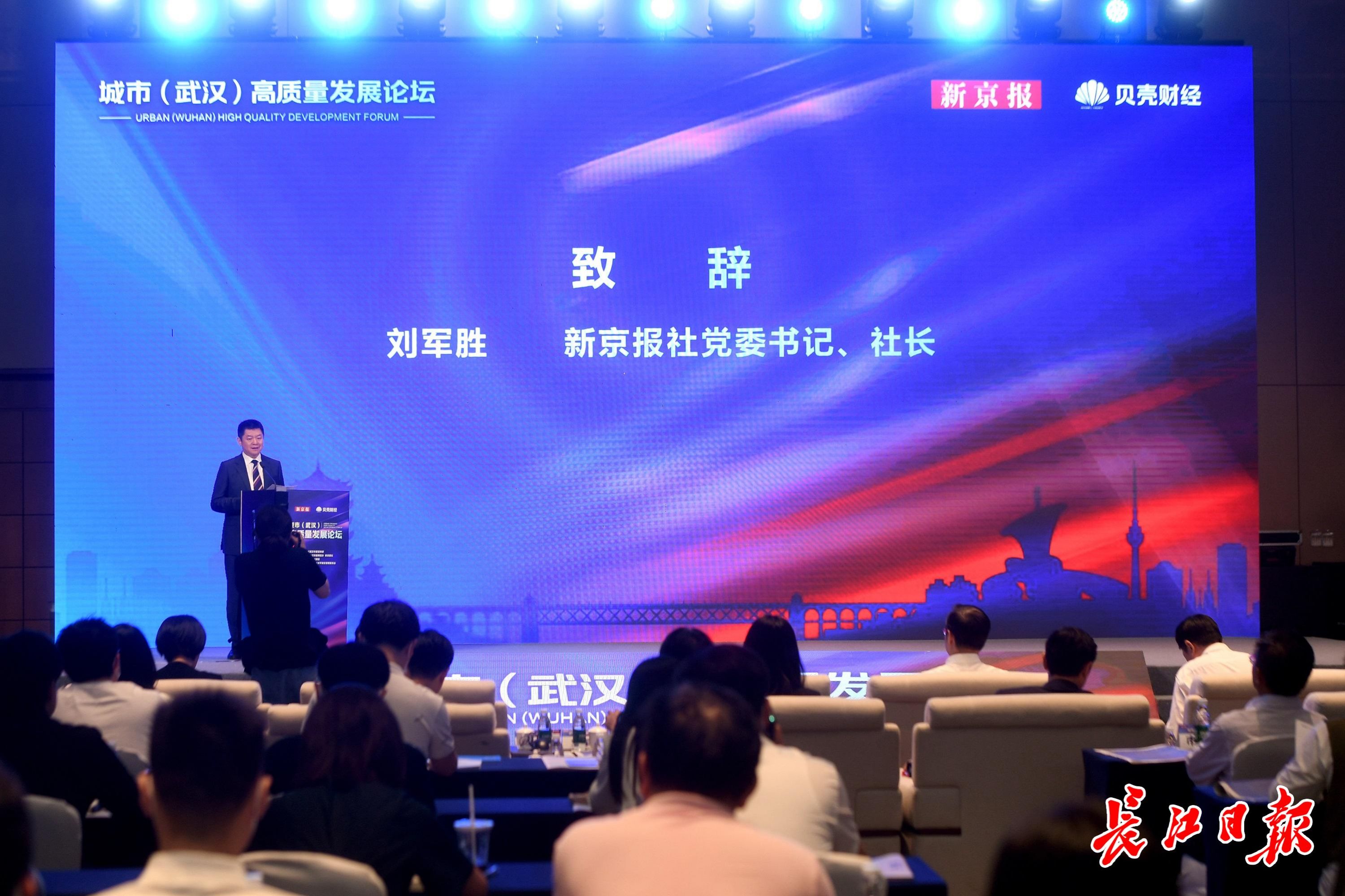 长江日报大武汉客户端5月31日讯(记者李琴 李昕宇)武汉新城,未来可期。5月31日,由新京报社和武汉市委网信办联合主办的“城市(武汉)高质量发展论坛”在武汉东湖高新区举办。新京报社党委书记、社长刘军胜在致辞中表示,此次论坛正是以武汉新城为案例,深度探究城市的高质量发展之路,解读武汉以科技为引领、城市板块发展为支撑的区域崛起密码。