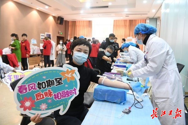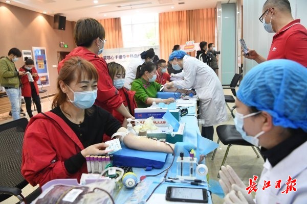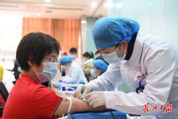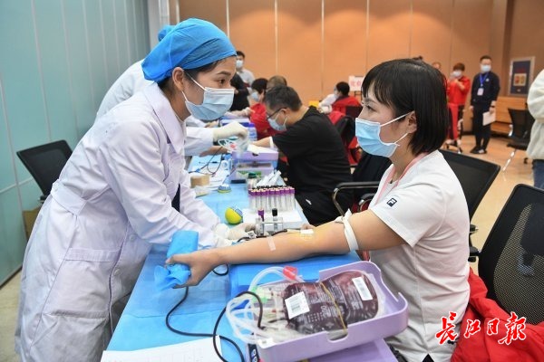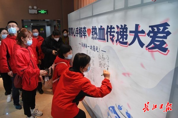 长江日报3月21日讯 3月21日下午,返汉探“亲”的内蒙古援鄂医疗队员们专程来到武汉血液中心,在即将结束的江城樱花之旅前集体献血,将一腔热血留在武汉,献给更多需要帮助的人。最终,13人献血成功,共计3300毫升。 (长江日报记者苗剑 通讯员 张全录 张智 摄影报道)