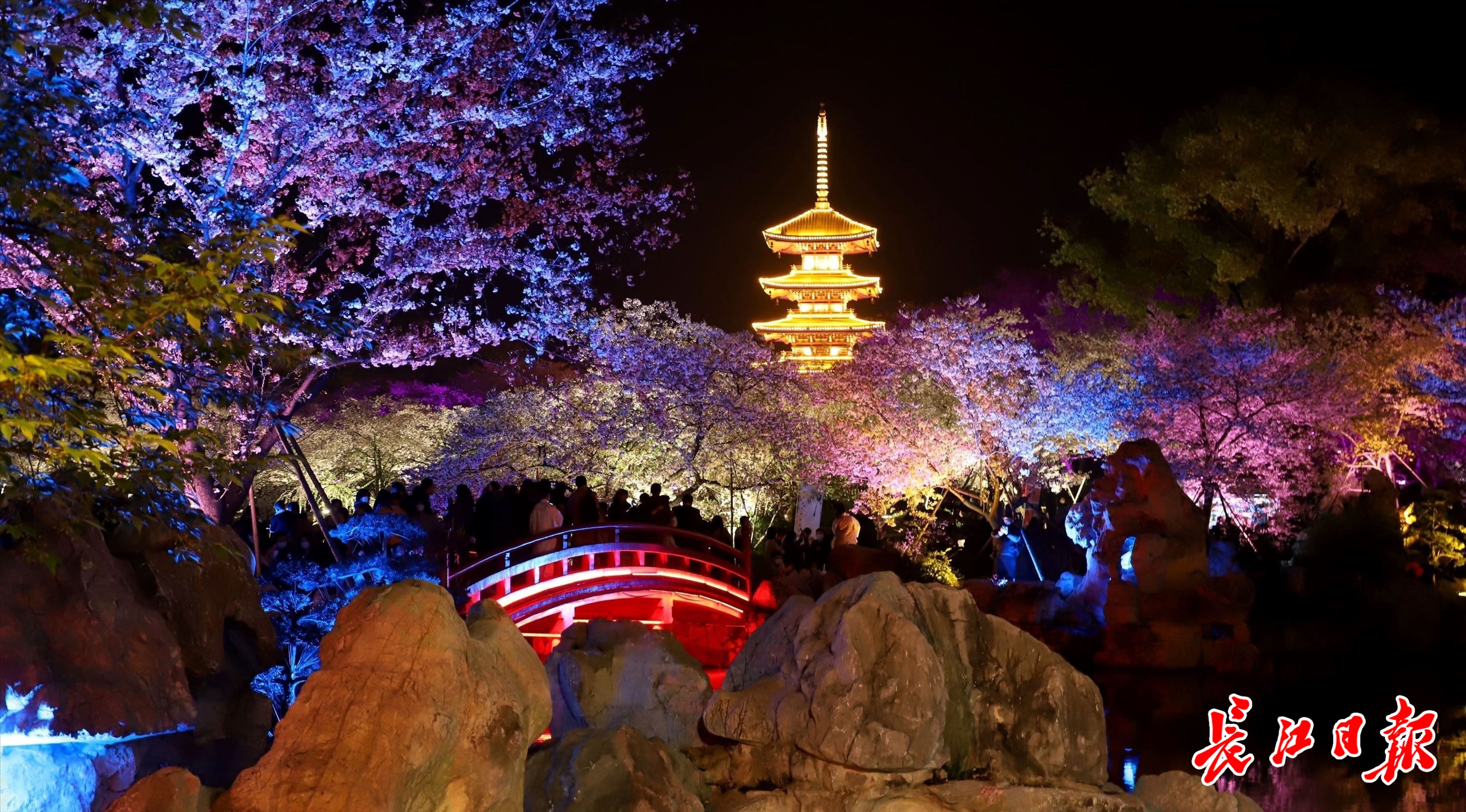 3月20日晚,东湖樱花园夜景。记者杨涛 摄