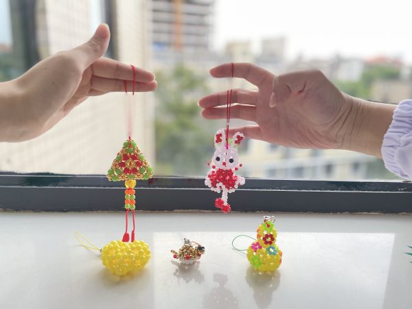 马阿姨告诉长江日报记者,在老伴和儿子住院的这些天里,医护人员查房、制定方案、用药调整、生活护理,方方面面都照顾得很周全,让全家人感受到了满满的关爱。现在,爷俩已经好得差不多了,马上就可以出院了。在出院前,她萌发了想为护士们送点特别的礼物。正好碰到六一儿童节,看到可爱的她们,她就熬了两个夜,用水晶串珠编织了30余个形象各异的钥匙扣,送给大家留个念想。
