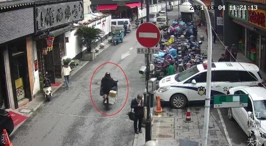 果然,再三仔细查看视频后,这次他又有了新的发现——黑衣男子的电动车吸引了杨方的注意。