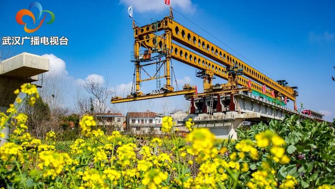 安沐春风,马不停蹄。3月20日,在遍地开满油菜花的武汉新港江北铁路倒水河特大桥架梁施工现场,中铁七局武汉公司铺架分公司施工人员正紧跟春天的脚步加紧进行架梁施工。