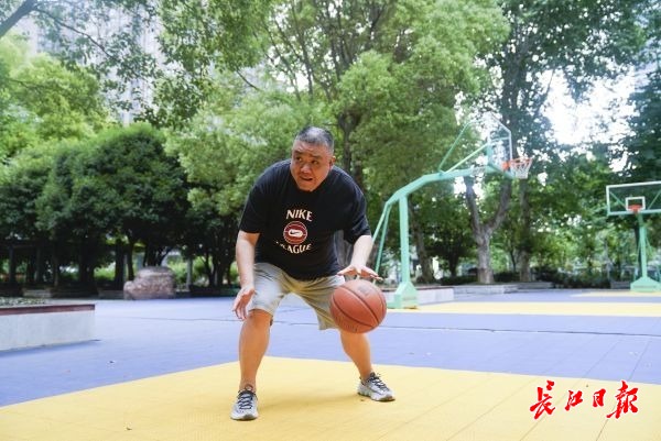 体态虽不再轻盈,运球依然潇洒自如。记者彭年 摄