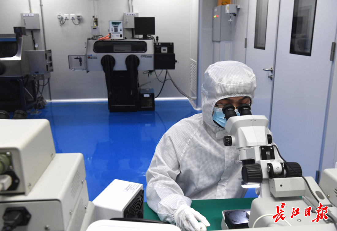 武汉光谷量子技术有限公司的封装间里工作人员在封装产品。长江日报记者高勇 摄