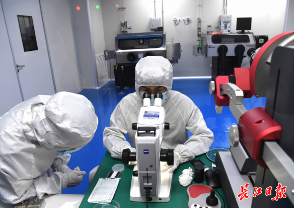 武汉光谷量子技术有限公司的封装间里工作人员在封装产品。记者高勇 摄