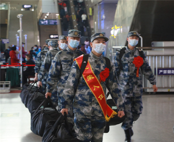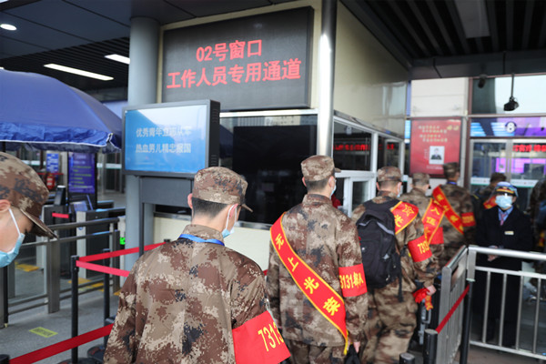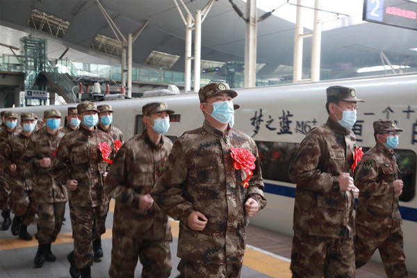 当天,武汉、武昌、汉口三大火车站分13个批次同步运送新战士奔赴军营,约有500名新兵在23日抵达部队。