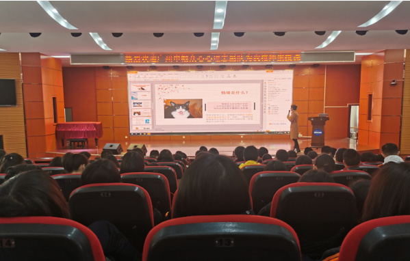 面对高二学生,王老师介绍了“什么是情绪”及“如何管理自己的情绪”等内容。