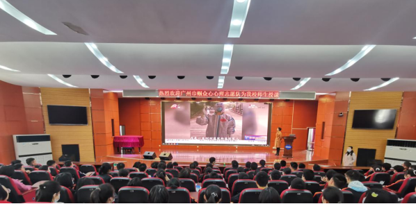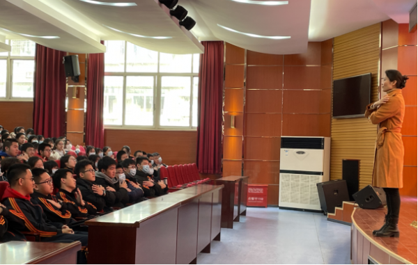 面对高三学生,王老师介绍了她在武汉的抗疫经历。鼓励孩子们要有远大的志向和家国情怀。王老师说:“我不仅懂心理知识,也懂生理知识。都可以运用到这次抗疫救援中。如果我只有一小部分知识,那我能做的事就很狭窄了。所以,同学们,一定要多学习知识啊!”现场响起了如雷的掌声。