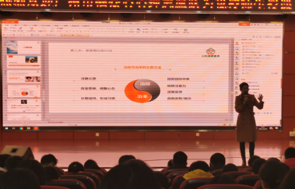 3月22日,武汉市第十一中学面向我校高二高三学生,分别开展了《管理情绪,应对挫折》和《减压提效,迎战高考》的心理健康课程讲座。讲座邀请到心理学专家王允个老师为学生分享管理情绪的方法,并现场示范正念练习的运用,引导同学们舒缓压力。