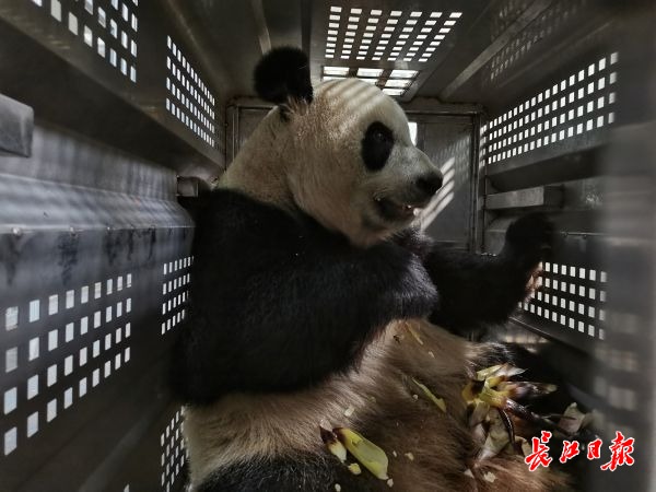10点50分,在航空箱里乖乖等待的春俏和胖妞,分别由饲养员和工作人员共8人,抬进了货运车内。载着大熊猫姐妹花的车子驶离了大熊猫馆,离开武汉动物园,开往机场。