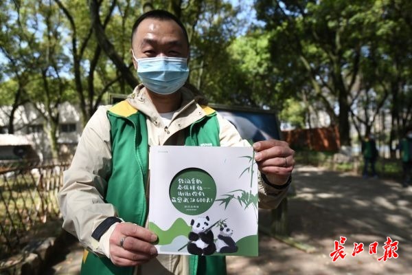 湖北大学研究生二年级的黄晶是大熊猫姐妹花的迷妹,她听说武汉动物园为大熊猫准备了一个樱花“旅行餐盒”小竹篓,便报名作为市民代表,将樱花“旅行餐盒”交到饲养员陈军手中。“上周日,小朋友在小竹篓上画了武汉的樱花。我们会把武汉人的祝福一起送回大熊猫姐妹花的老家——四川雅安碧峰峡基地四川雅安碧峰峡基地。”