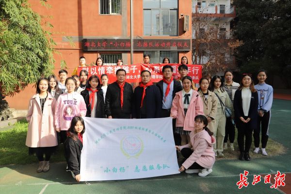 启动仪式上,吕锡三小学与湖北大学公共管理学院负责人与“小白杨“志愿队合影。