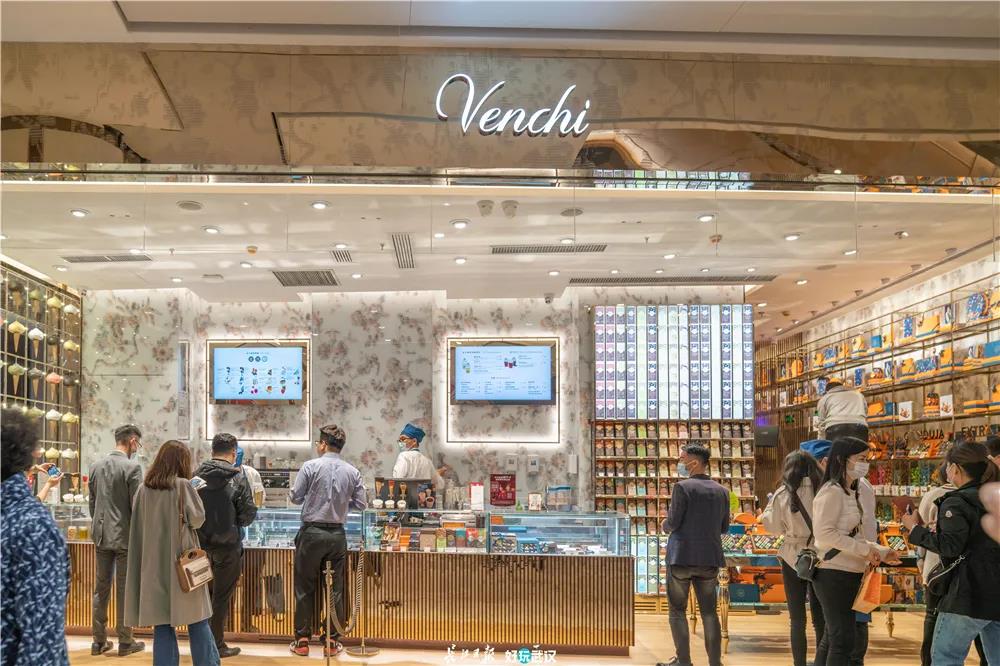 同样再负一楼区域,还有几家美食首店。意大利巧克力品牌VENCHI,它家主打的是巧克力与冰淇淋。草莓、开心果、芒果……甜食爱好者们会不会有“选择”困难?此外,奈雪的茶等武汉伢喜欢的饮品店铺也会到齐,啄一口奶茶逛街走起!