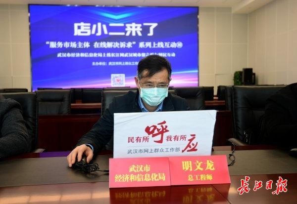长江日报3月25日讯 工业互联网怎么用?“店小二”来服务!3月25日15:00至17:00,武汉市网上群众工作部举行“服务市场主体,在线解决诉求”系列上线活动第十场,市经济和信息化局总工程师明文龙携相关处室负责人上线市网上群众工作部·武汉城市留言板答问,在大武汉客户端与网友在线交流。