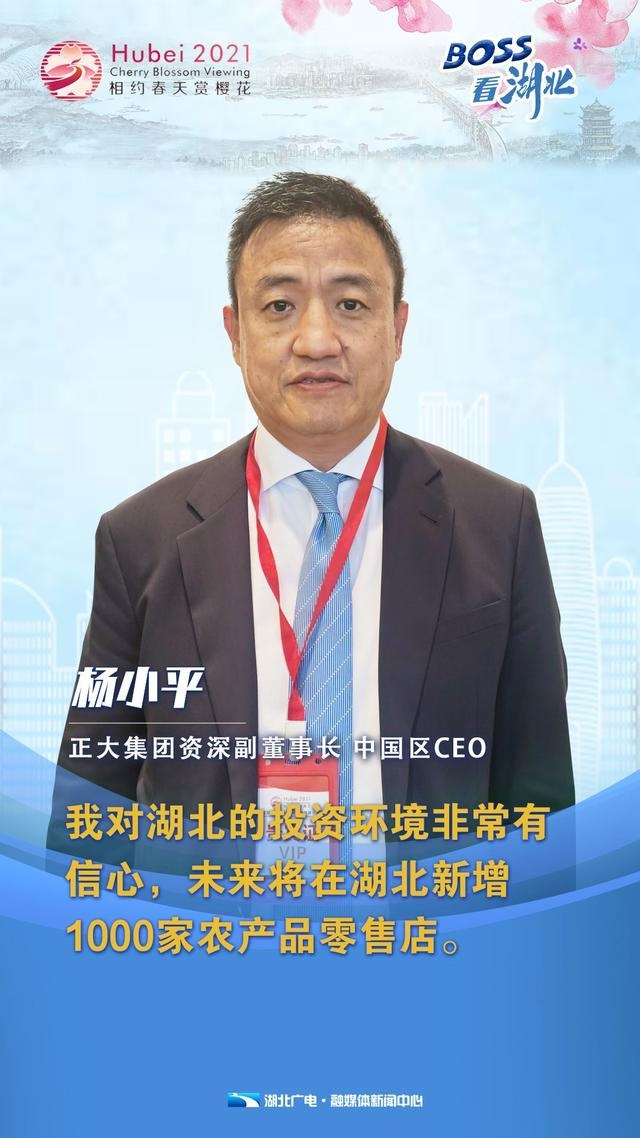 正大集团资深副董事长、中国区CEO杨小平说:“这次疫情之后,我是第一次来武汉,武汉确实给全球做了一个表率。我们这次来有一个大计划。在湖北,我们农牧企业、农业现代化有了一个很好的基础。下一步,准备在现代养猪、食品深加工,到物流,将一二三产融合,推动四位一体的新发展模式,预计做几百亿投资的考虑。”