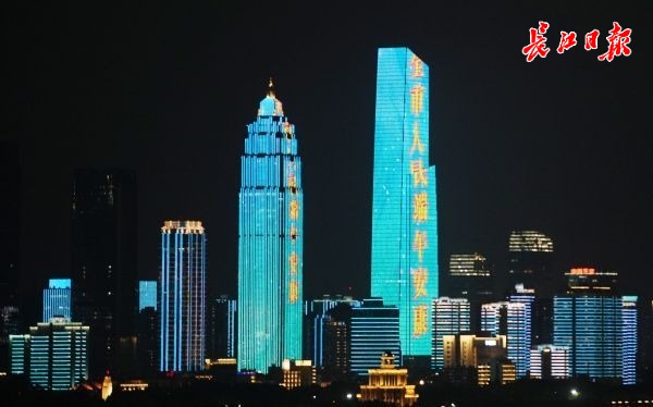 当对天饮酒的屈原站在粽子模样的山顶之上,趣味丛生。不同的建筑上分别呈现出编五绳、挂艾叶与菖蒲、赛龙舟等端午习俗。卡通版的黄鹤楼、江汉关、长江二桥、知音号、龟山电视塔等武汉地标景点也一一映入眼帘,“健康”“快乐”等词汇和“端午安康”的祝福语在长江二桥、天悦外滩金融中心、武汉天地企业天地壹方、龟山电视塔等建筑上给市民游客送去祝福。从昆明来汉旅游的王女士说:“粽子色的灯光秀挺好看的,一句句问候在人心头荡漾,武汉这座城市让人感到温暖。”